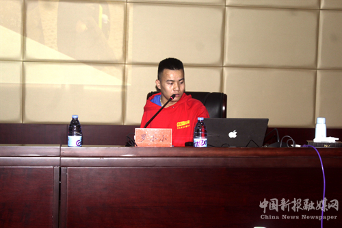 羅小小正在現(xiàn)場(chǎng)進(jìn)行志愿服務(wù)演講