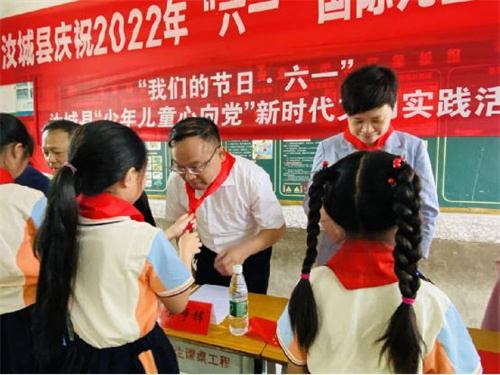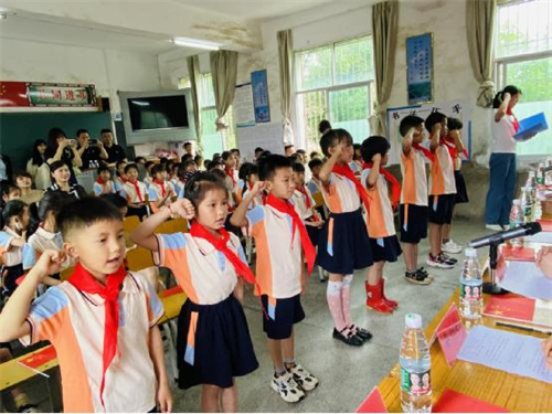 活動伊始,孩子們?yōu)槲繂柦M一行戴上了鮮艷的紅領(lǐng)巾,用熱烈的掌聲向到來的客人們表示歡迎。接著,由司徒良小學(xué)校長傅秀秀致歡迎詞,少先隊(duì)輔導(dǎo)員何晨宇帶領(lǐng)孩子們進(jìn)行少先隊(duì)入隊(duì)儀式。儀式結(jié)束后,汝城縣婦聯(lián)、縣民政局向該校師生捐贈校服、體育用品共計12000元。