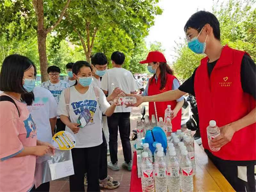 學(xué)子苦讀十二載,一朝收獲終有成。“同學(xué),來(lái)瓶水,考試加油!同學(xué),來(lái)個(gè)口罩,祝你金榜題名!……”在鶴壁市蘭苑中學(xué)考點(diǎn),身著潮裝,精神抖擻,積極熱情的志愿者給考生送上水和口罩,成為高考期間獨(dú)特的風(fēng)景。一瓶瓶水、一包包紙巾、一個(gè)個(gè)口罩、……遞到考生的手中,一句簡(jiǎn)單的“考試加油”讓考生感受到更多鼓勵(lì)。隨著考生進(jìn)入考場(chǎng),志愿者把水送到陪考家長(zhǎng)手中、送到助考的特警、交警、城管和學(xué)校保安、保潔手中……讓溫暖流進(jìn)每一個(gè)人的心田。接過(guò)志愿者手中愛(ài)心大禮包的考生和陪考、助考的家長(zhǎng)、工作人員紛紛夸贊:“這樣的愛(ài)心活動(dòng)真是太暖了,想得真周到……”