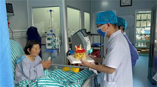 看著蛋糕、聽著歌聲,奶奶眼中閃爍著幸福的淚光,于奶奶露出了真摯而感動(dòng)的笑容:“謝謝你們,你們的關(guān)愛與照護(hù)讓我很感動(dòng),你們想得太周到了!”目前,于奶奶經(jīng)過精準(zhǔn)救治,將轉(zhuǎn)入普通病房治療。(楊雙玉 曾汝俊)