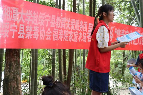 近日,為積極響應(yīng)省禁毒委“喜迎二十大,禁毒宣傳進(jìn)萬(wàn)家”的號(hào)召,湘潭大學(xué)金翼5·1·8愛(ài)心團(tuán)隊(duì)赴綏寧縣教育關(guān)愛(ài)服務(wù)團(tuán)在綏寧縣雀林國(guó)學(xué)堂“黃村長(zhǎng)”的幫助下以“三下鄉(xiāng)”暑期愛(ài)心支教為契機(jī),聯(lián)合綏寧縣禁毒協(xié)會(huì)、武陽(yáng)鎮(zhèn)禁毒辦在福壽院家庭農(nóng)場(chǎng)開展主題為“三下鄉(xiāng)”惠綏寧,“宣禁毒”護(hù)青春的禁毒反詐普法及防溺水宣傳活動(dòng)。