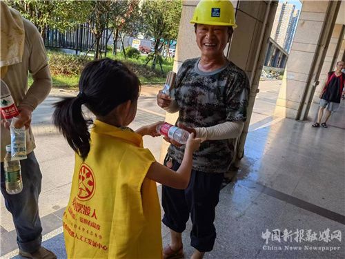這次參加活動的小朋友中,最小的才4歲,也跟隨哥哥奶姐姐們走在馬路上去送水,雖然天氣炎熱,小小義工們卻樂此不疲,奔走在大街小巷,尋找戶外辛勤工作人員,當送出一瓶愛心礦泉水,小朋友們心里是快樂的,滿足的,也深深感受到這些默默堅守在自己崗位上的戶外工作者的不容易。