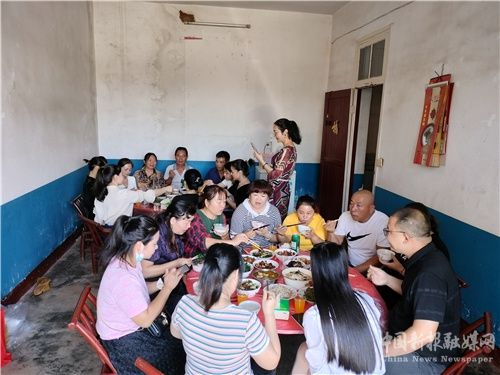 一進(jìn)門,義工們放下手中的禮物,就有條不紊的開始分工合作,摘菜的,洗菜的,切菜的,燒火的,炒菜的,淘米的......從那熟悉的架勢(shì)就看得出來大家顯然這已經(jīng)不是第一次來了。在一片歡聲笑語(yǔ)中,一盤盤的美味就已經(jīng)陸續(xù)擺上了餐桌,呈現(xiàn)在大家面前,滿滿的兩桌美食都是出自于副站長(zhǎng)田曉勤的先生黃宇之手,他一直都在用實(shí)際行動(dòng)支持著老婆的公益事業(yè)和愛的擺渡人組織的活動(dòng)。入座后,大家一起舉杯為李媽媽祝生,現(xiàn)場(chǎng)好不熱鬧。吃過飯后,所有人一起收桌子洗碗,充分體現(xiàn)了團(tuán)隊(duì)的力量。在大家忙活的間隙,副站長(zhǎng)黃可為星沙來的愛心人士們?cè)俅沃v述了李媽媽家的故事,讓他們感動(dòng)不已,都覺得此行非常有意義,并表示想盡盡自己愛心。下午一點(diǎn)半,義工們將準(zhǔn)備好的生日蛋糕擺上桌,大家一起拍手為李媽媽唱起了生日歌,送上了美好的祝福,分享了幸福的蛋糕。