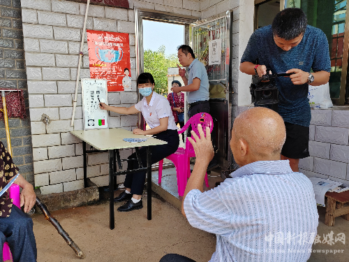 愛(ài)爾眼科的醫(yī)生現(xiàn)場(chǎng)為老人檢查視力