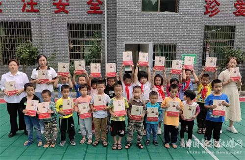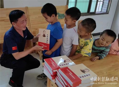 當(dāng)東山村的孩子們從胡立強(qiáng)手中接過(少年毛澤東連環(huán)畫冊(cè))時(shí)表示:一定要學(xué)習(xí)偉人毛澤東,好好學(xué)習(xí),天天向上!(特約記者 張國(guó)軍 攝影 李春林)