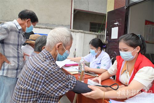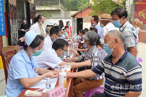 9月18日,湖南省隆回縣第二人民醫(yī)院與司門前鎮(zhèn)中心衛(wèi)生院聯(lián)合為石山灣村群眾開展健康義診。當天,醫(yī)務(wù)人員為村民免費測量血壓、血糖,提供健康體檢、疾病咨詢、用藥咨詢等服務(wù),耐心解答村民們的疾病問題,發(fā)放宣傳資料大力普及健康知識,介紹防病和養(yǎng)生知識,給村民提出合理的膳食、運動等生活指導(dǎo)。(賀上升攝)