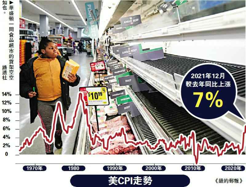 綜合《華爾街日報》、CNN報道:美國2021年12月CPI同比上漲7%,達(dá)到1982年夏天以來的最高水平。分析人士警告說,1982年時,通脹指數(shù)已呈現(xiàn)下降趨勢,但今時今日的通脹率卻在持續(xù)走高,這次通脹“破7”較40年前更為危險。美媒指出,只要物價還在漲,民眾對拜登政府的怨氣就不會消散,民主黨極有可能在11月的中期選舉失去在參眾兩院的微弱優(yōu)勢。美聯(lián)儲官員布拉德表示,2022年可能加息4次。