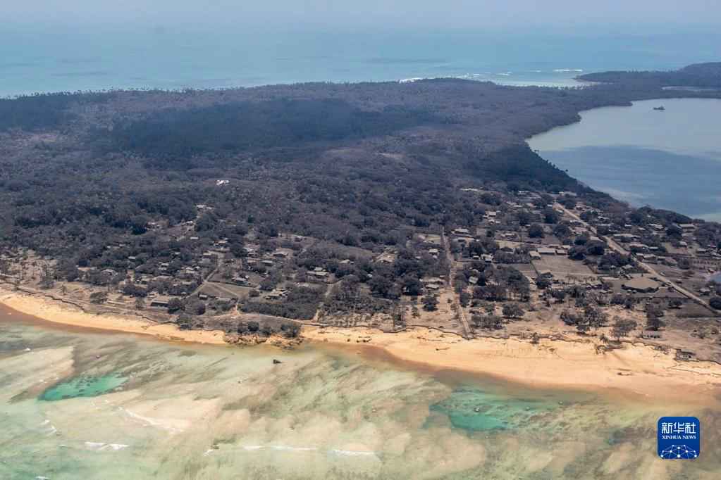 這張新西蘭國防部提供的照片顯示的是1月17日拍攝的湯加主島湯加塔布島。