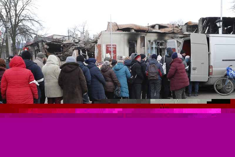 ↑3月15日,當(dāng)?shù)鼐用裨陬D涅茨克的沃爾諾瓦哈排隊(duì)領(lǐng)取人道主義援助物資。新華社發(fā)(維克托攝)