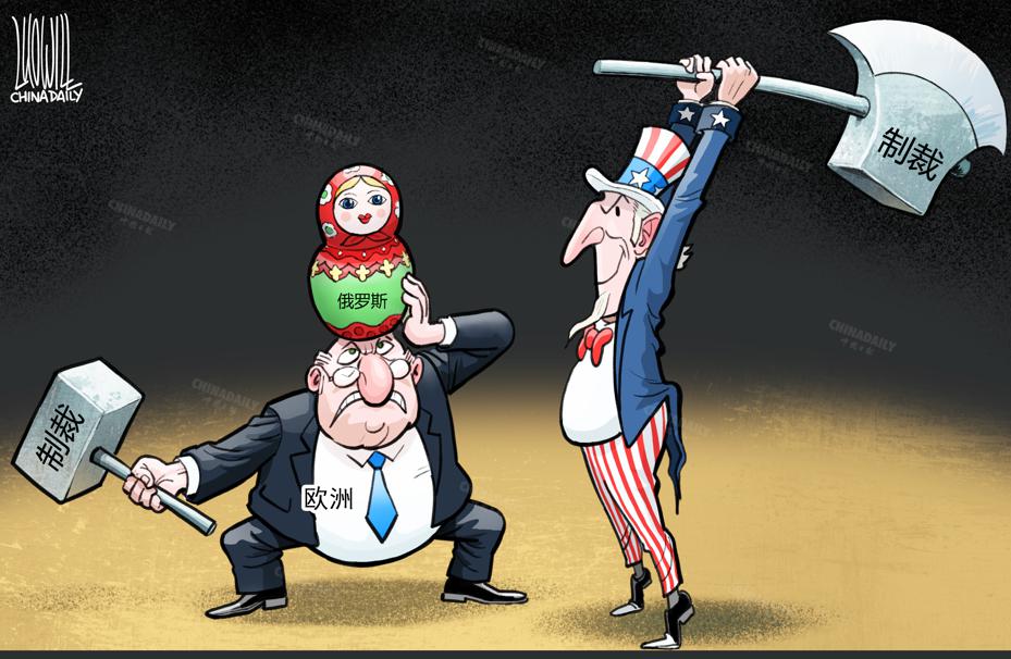 歐洲應(yīng)該意識到,追隨美國制裁俄羅斯,最終受傷的可能是自己。(漫畫作者:中國日報美術(shù)部 羅杰)