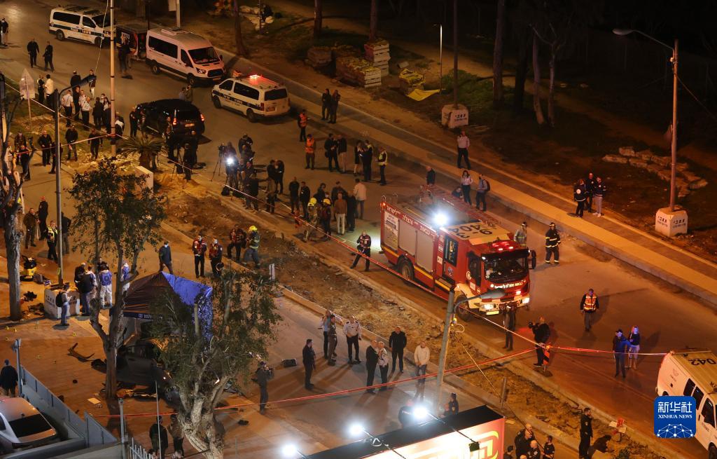 3月27日,安全人員在以色列北部沿海城市哈代拉的槍擊事件現(xiàn)場(chǎng)工作。新華社/基尼圖片社