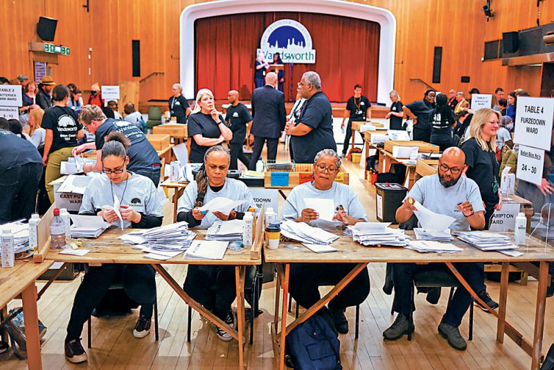 圖:工作人員5日在倫敦旺茲沃市政廳計票。\路透社