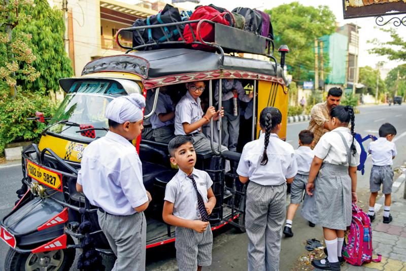 圖:印度兒童面臨“番茄流感”威脅,圖為印度兒童2日乘車去學(xué)校。\法新社