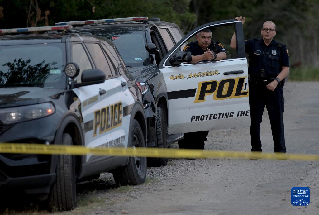6月28日,警察在美國(guó)得克薩斯州圣安東尼奧移民死亡事件現(xiàn)場(chǎng)警戒。