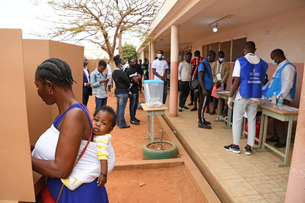 8月24日,選民在安哥拉羅安達省的一處投票站參加大選投票。(新華社記者陳誠攝)