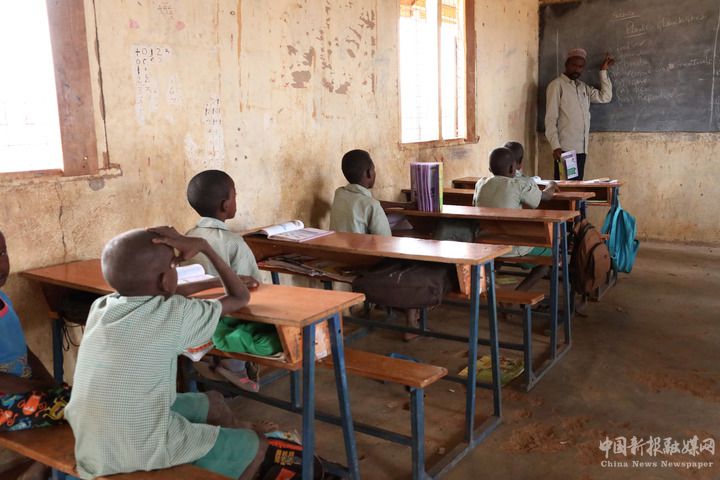 8月26日,在遭受旱災的肯尼亞馬薩比特郡萊薩米斯鎮(zhèn),孩子們在學校上學。受干旱的影響,該校有一半的學生無法上學。新華社記者董江輝攝