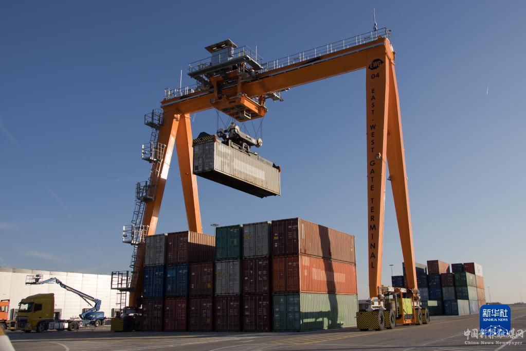 10月18日,由5G技術(shù)遠(yuǎn)程控制的龍門起重機(jī)在匈牙利費(fèi)涅什利特凱的東西門場(chǎng)站搬運(yùn)集裝箱。