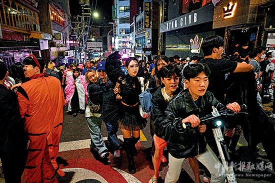 圖:踩踏事故發(fā)生后,梨泰院的狂歡活動并未停止。/法新社