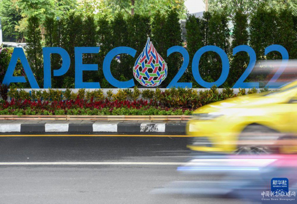 這是11月14日在泰國(guó)首都曼谷街頭拍攝2022年APEC會(huì)議標(biāo)識(shí)。