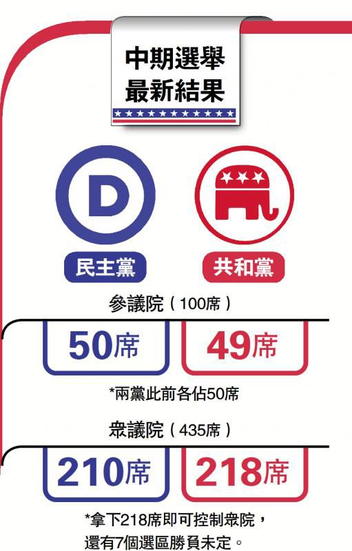 在眾議院435個(gè)席位中,共和黨已經(jīng)獲得218席,民主黨暫時(shí)獲得210席,共和黨成為眾議院多數(shù)黨,美媒預(yù)測(cè)共和黨最終議席為220席上下。美聯(lián)社稱,共和黨有望拼湊出該黨在21世紀(jì)“最微弱的多數(shù)席位”,可以與2001年“相媲美”,當(dāng)時(shí)共和黨在眾議院只比民主黨多了9席。