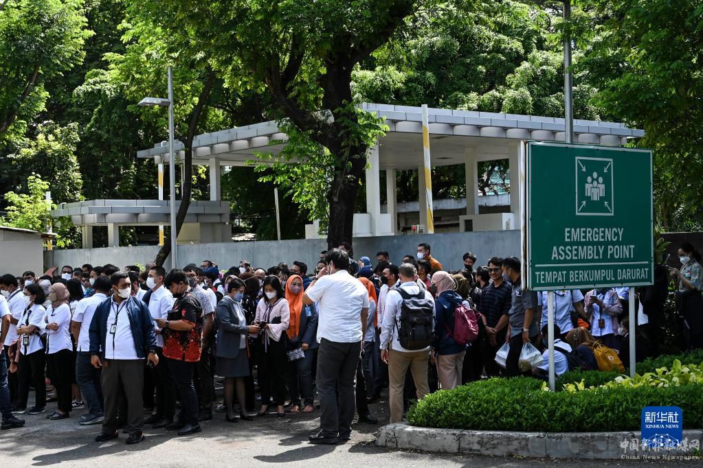 11月21日,在印度尼西亞雅加達(dá),人們?cè)趹敉忾_(kāi)闊地帶避險(xiǎn)。新華社發(fā)(維里攝)