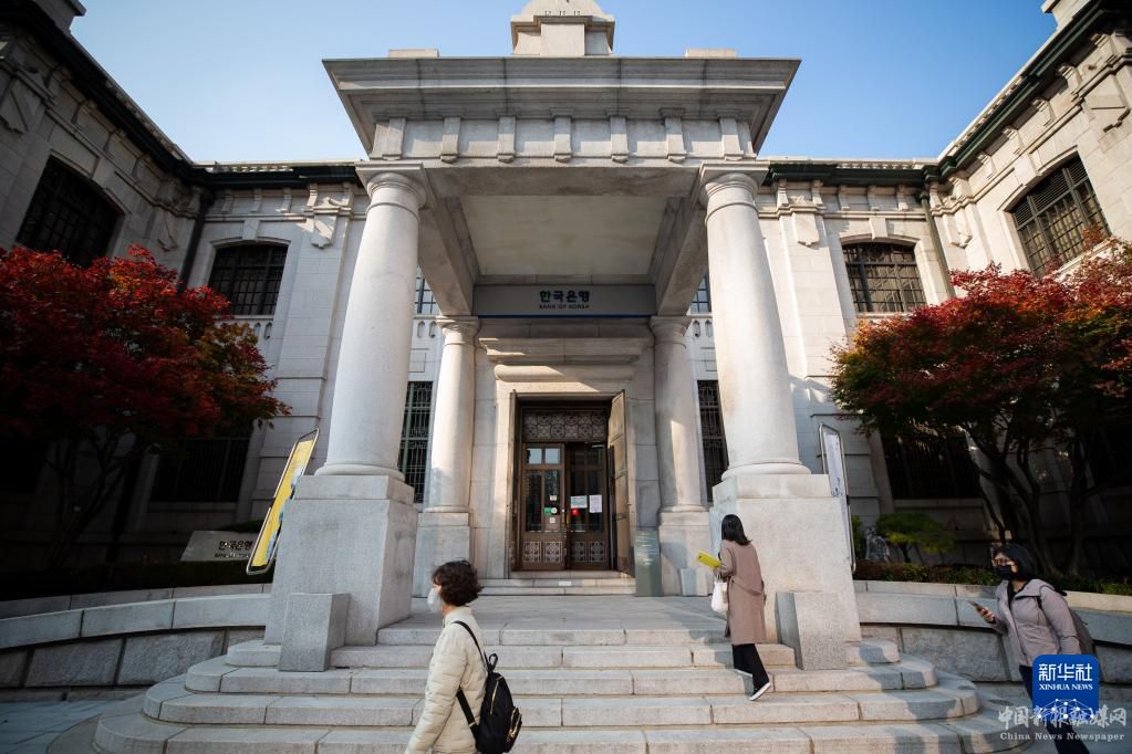 11月24日,在韓國首爾,行人經(jīng)過韓國中央銀行韓國銀行。新華社記者 王益亮 攝