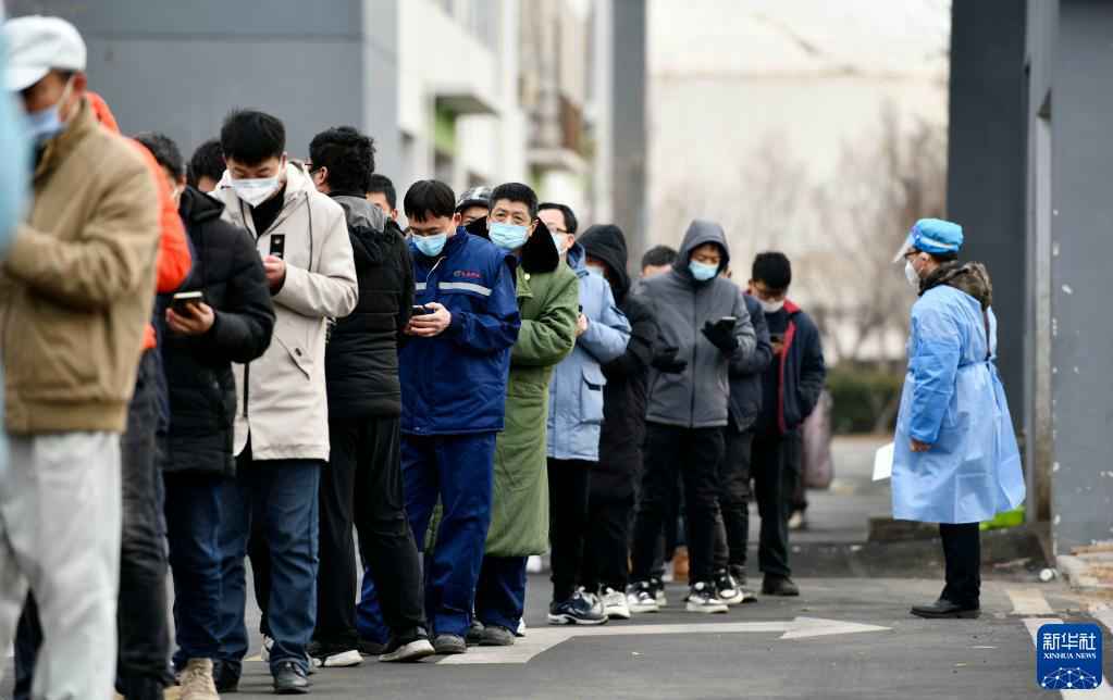 1月9日,在天津?yàn)I海高新區(qū)的一處核酸檢測點(diǎn),居民排隊(duì)等待核酸檢測。新華社記者 趙子碩 攝