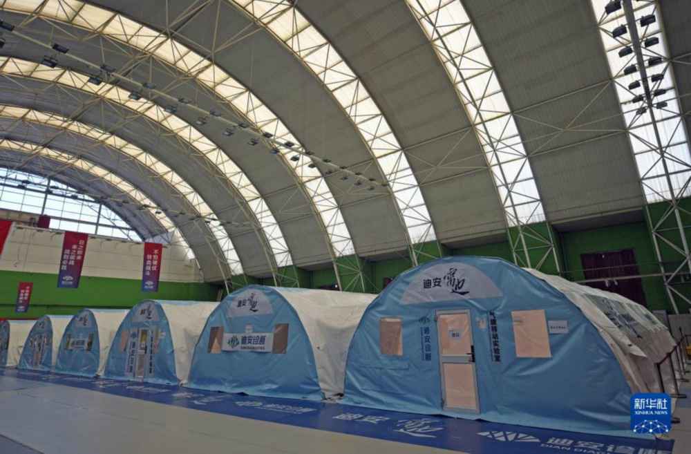 這是1月13日拍攝的位于天津市濱海新區(qū)漢沽網(wǎng)球館內(nèi)的氣膜實驗室。
