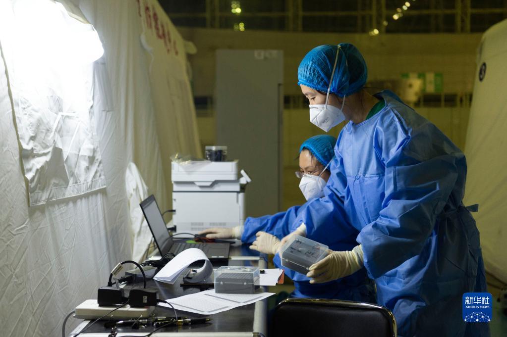 3月18日晚,醫(yī)務(wù)人員在哈爾濱市移動(dòng)實(shí)驗(yàn)室中工作。