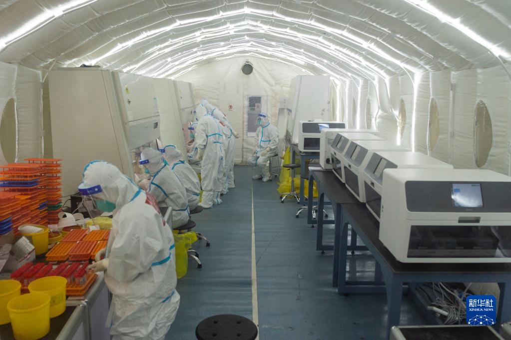 據(jù)了解,該移動(dòng)實(shí)驗(yàn)室占地1.2萬(wàn)平方米,由移動(dòng)帳篷、氣膜實(shí)驗(yàn)室、移動(dòng)檢測(cè)車(chē)三種實(shí)驗(yàn)室組成,最高日檢測(cè)能力超過(guò)100萬(wàn)人份。