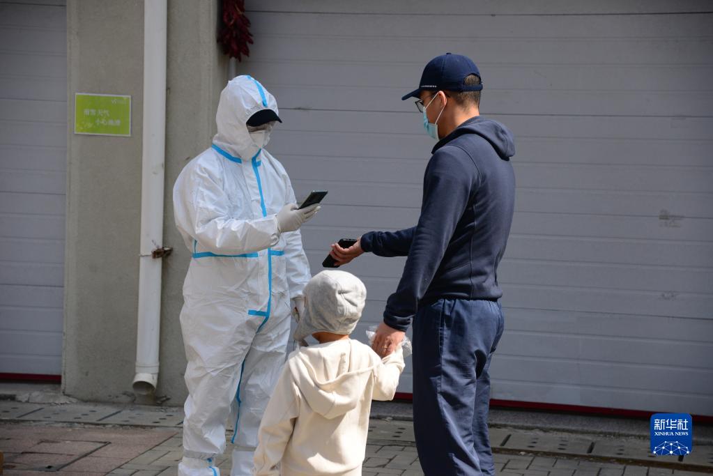 4月3日,在長(zhǎng)春市南關(guān)區(qū)一處核酸檢測(cè)點(diǎn),居民在掃碼登記信息。