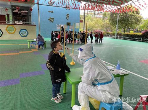 為了科學(xué)精準(zhǔn)有效地做好疫情防控工作,切實(shí)做到“早發(fā)現(xiàn)、早隔離、早治療”,最大限度降低傳播風(fēng)險(xiǎn),確保學(xué)校安全有序開展教育教學(xué)工作,根據(jù)縣疫情防控辦統(tǒng)一部署,4月1日,宜章縣黃沙鎮(zhèn)集中開展轄區(qū)各中小學(xué)校、幼兒園師生和各學(xué)校宿舍管理員、門衛(wèi)及食堂工作人員全員核酸檢測工作。在檢測現(xiàn)場,鎮(zhèn)衛(wèi)生院的工作人員身穿白色防護(hù)服,帶著防護(hù)帽和口罩,在學(xué)校周密組織和教職工積極配合下,嚴(yán)格按照采樣流程規(guī)范操作,分批、分班對全體師生進(jìn)行核酸檢測采樣。接受核酸檢測采樣的師生都嚴(yán)格遵守防疫要求,自覺戴好口罩,前后間隔1米,主動(dòng)配合核酸檢測工作,采集完畢后有序返回教室。