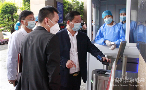 吳樂(lè)勝一到常寧市中醫(yī)醫(yī)院,就以不打招呼形式,下車直奔醫(yī)院醫(yī)療綜合大樓大門口預(yù)檢分診處,掏出手機(jī)刷健康碼、人臉驗(yàn)證、門禁自動(dòng)測(cè)體溫,通過(guò)醫(yī)療綜合大樓大門入口通道,然后又在門診大廳,仔細(xì)檢查醫(yī)院各項(xiàng)防控措施是否嚴(yán)格按照常寧市疫情防控要求落實(shí)到位。吳樂(lè)勝看到通道入口醫(yī)務(wù)人員能嚴(yán)格把關(guān),對(duì)每一位來(lái)院人員都進(jìn)行嚴(yán)格查碼驗(yàn)證,醫(yī)務(wù)人員清楚紅色健康碼、黃色健康碼以及發(fā)熱病人的處置流程,并且醫(yī)院還對(duì)進(jìn)出口實(shí)行單通道通行。自己還親自體驗(yàn)了一下,感到醫(yī)院疫情防控工作扎實(shí),做到嚴(yán)絲合縫,滴水不漏。吳樂(lè)勝還在入口通道處用自己的身份證測(cè)試門禁系統(tǒng),檢查門禁系統(tǒng)是否能滿足老年人和其它沒(méi)有智能手機(jī)人員通行情況。