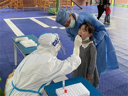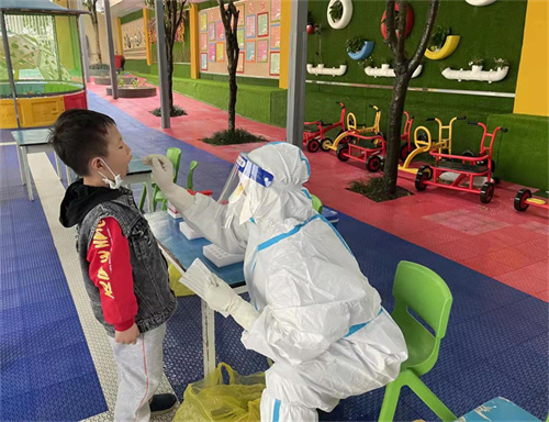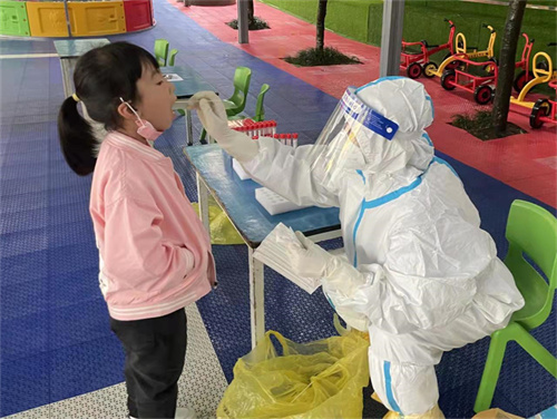 4月13日,湖南省汝城縣第二人民醫(yī)院醫(yī)護(hù)人員深入小杜鵑幼兒園開展核酸采集工作,全力保障師生安全健康。