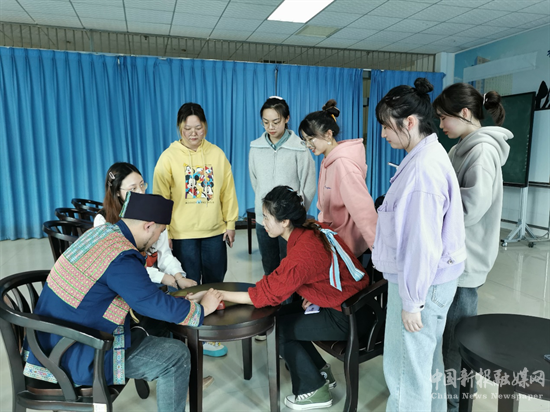 民族醫(yī)藥研究中心特聘侗醫(yī)傳人吳東克為同學(xué)們做民族醫(yī)示范性教學(xué)