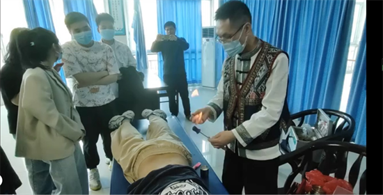 民族醫(yī)藥研究中心肖尊雄醫(yī)生為同學(xué)們做民族醫(yī)示范性教學(xué)