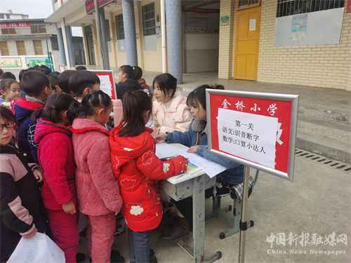 為有效落實“雙減”政策,激發(fā)學(xué)生的學(xué)習(xí)興趣,促進學(xué)生個性發(fā)展,2021年1月14日,隆回縣金橋小學(xué)在一、二年級開展了“快樂童年來闖關(guān)”非紙筆化期末學(xué)業(yè)發(fā)展水平測評活動。學(xué)校以“闖關(guān)游戲”的形式檢驗學(xué)生們在本學(xué)期中對語文、數(shù)學(xué)、音樂、體育、美術(shù)和勞動教育六門學(xué)科的基礎(chǔ)知識、基本技能的掌握情況,由考核教師根據(jù)學(xué)生闖關(guān)情況給予相應(yīng)的等級評價。