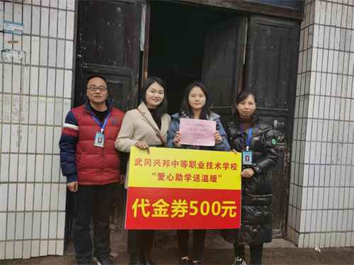 武岡市興邦職校歷來關(guān)愛關(guān)注留守少年、貧困家庭少年、優(yōu)秀少年、一老一少。寒假剛到,1月17日到18日,興邦職校開展“愛心助學送溫暖,優(yōu)秀學生送喜報”的愛心暖心活動行,幾十名教師在校長龍駿,副校長程小忠的帶領(lǐng)下,不顧陰雨連綿,不顧冷風撲面,走村串戶,行程幾千公里,為60余名貧困學生各送去五百元助學慰問金,給70余名優(yōu)秀學生送去喜報慰問,并對一老一少上門關(guān)愛。這一份份由學校傳遞的愛心,化作陣陣溫暖直入學生和家長的心田,令孩子們的臉上充滿了陽光快樂的笑意。