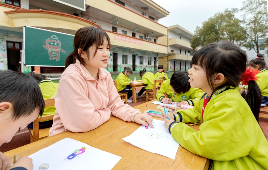 老師正在指導(dǎo)繪畫興趣小組的學(xué)生學(xué)習(xí)繪畫。周亞茂攝