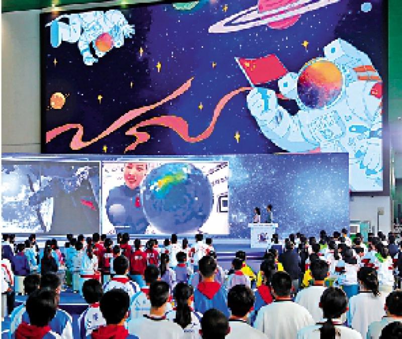 2021年12月9日,“天宮課堂”進(jìn)行了首次太空授課,“太空教師”翟志剛、王亞平、葉光富與地面課堂師生互動(dòng)交流。首次太空授課中,3名航天員在軌介紹展示中國(guó)空間站工作生活場(chǎng)景,演示太空細(xì)胞學(xué)研究實(shí)驗(yàn)、太空轉(zhuǎn)身、浮力消失實(shí)驗(yàn)、水膜張力實(shí)驗(yàn)、水球光學(xué)實(shí)驗(yàn)、泡騰片實(shí)驗(yàn)等,并與地面課堂進(jìn)行實(shí)時(shí)交流,拉近青少年與載人航天的距離,持續(xù)興起探知航天奧秘、學(xué)習(xí)航天知識(shí)的熱潮。
