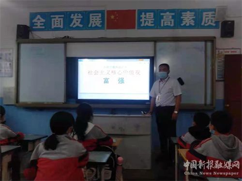 近日,記者走進(jìn)該校,發(fā)現(xiàn)這所村級(jí)小學(xué)亮點(diǎn)紛呈。3月14日,星期一下午第三節(jié)課,全校六個(gè)班的班主任老師開始忙起來了。只見他們拿著教學(xué)資料,信心滿滿的走進(jìn)了各自的班級(jí),檢查預(yù)習(xí)情況、出示PPT,準(zhǔn)備非常充分,開始了一場(chǎng)別開生面的“社會(huì)主義核心價(jià)值觀”之“富強(qiáng)”的主題班會(huì)。