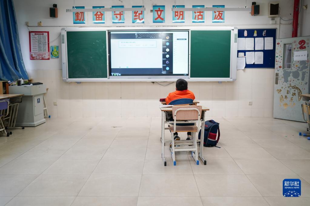 當(dāng)日,上海市楊泰實(shí)驗(yàn)學(xué)校四年級六班的蒲蕓帆照常從學(xué)校宿舍醒來,用完早餐,走進(jìn)教室開始一天的學(xué)習(xí)生活。與以往不同的是,教室里只有他一名學(xué)生。由于留校住宿等原因,蒲蕓帆成了班級里唯一需要在校參與線上學(xué)習(xí)的學(xué)生。據(jù)了解,楊泰實(shí)驗(yàn)學(xué)校共有十多名學(xué)生因各種原因需要留校參與線上學(xué)習(xí)。學(xué)校了解情況后第一時(shí)間制定了方案,在遵守防疫政策、嚴(yán)格落實(shí)疫情防控措施的前提下,安排居家照護(hù)存在困難的學(xué)生到校參加線上教學(xué)。