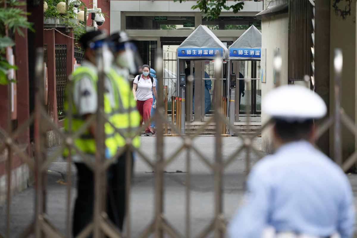 7月7日,上海市靜安區(qū)市西中學(xué)高考考點(diǎn),考生進(jìn)入考場。(中國日報(bào)記者 高爾強(qiáng) 攝)