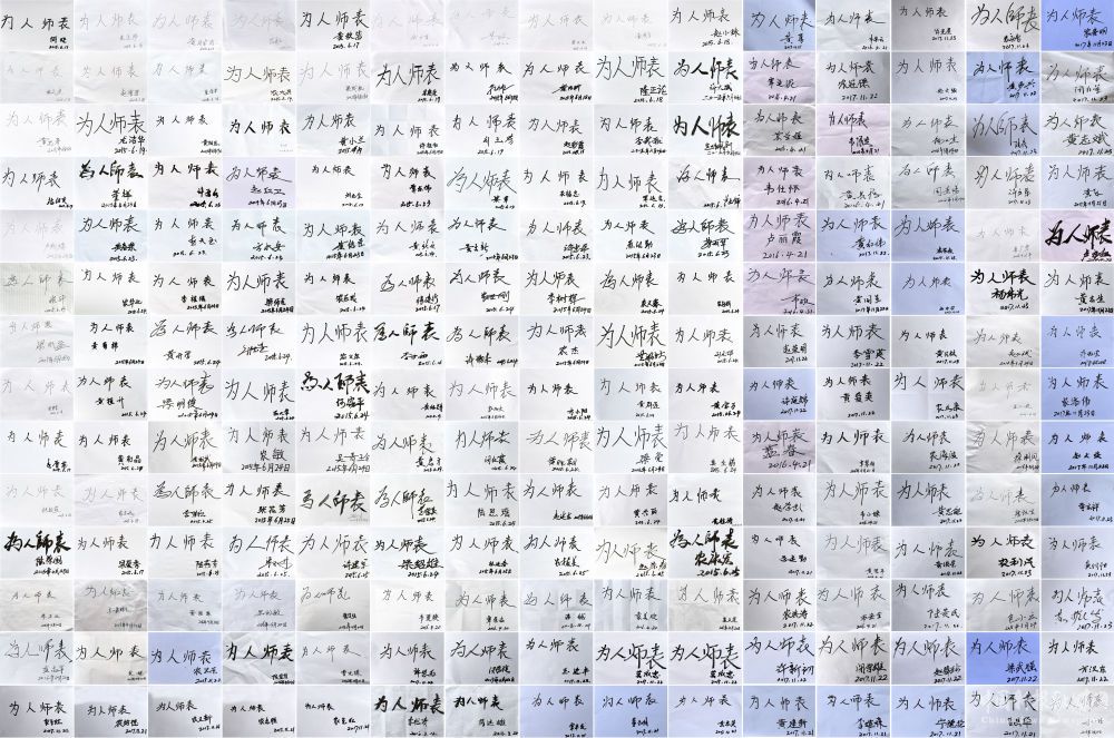 這張拼版照片是210名廣西山區(qū)教師手書的“為人師表”。