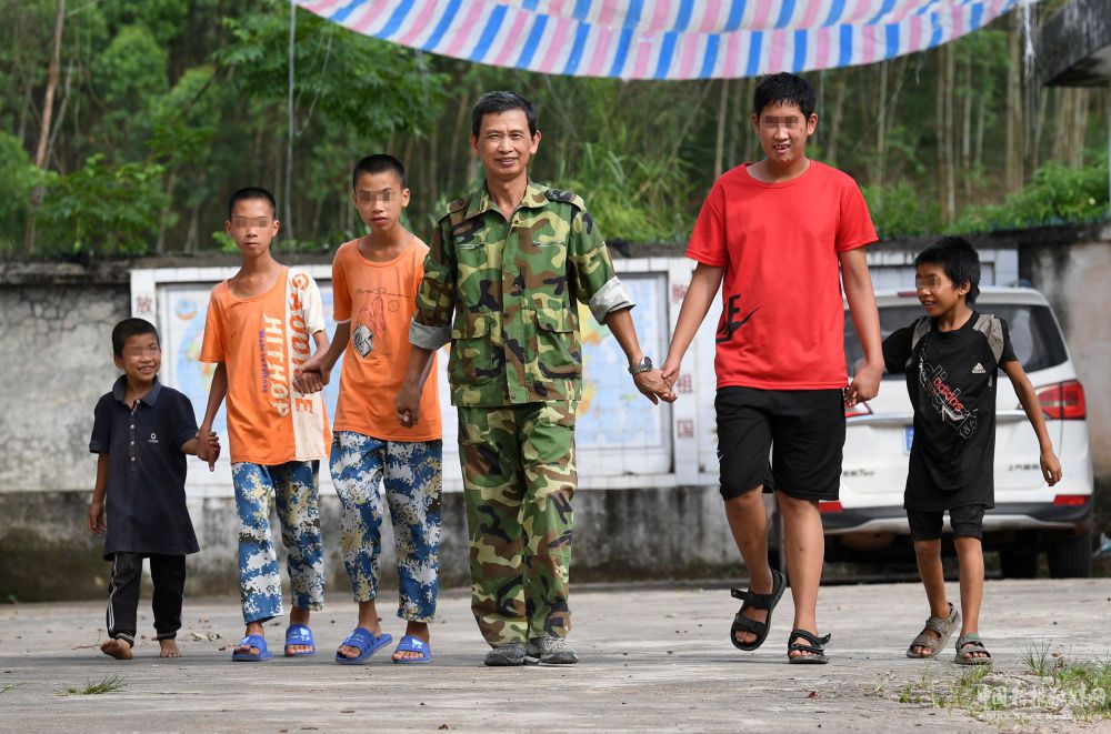 2020年8月,梁志雄光榮退休。但這3名殘障學(xué)生無法升學(xué)到其他學(xué)校就讀,梁志雄主動請纓繼續(xù)留下堅守。2021年2月,逢通村教學(xué)點(diǎn)又來了兩名殘障學(xué)生。梁志雄繼續(xù)陪伴著他們。