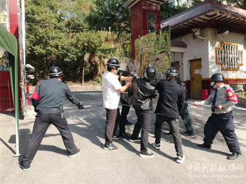 同時,該校第一時間啟動反恐防暴應(yīng)急預(yù)案,反恐防暴隊員們持器械立即趕到現(xiàn)場,投入“戰(zhàn)斗”,阻止“歹徒”進(jìn)校門,盡量拖延時間,等待警方到來。
