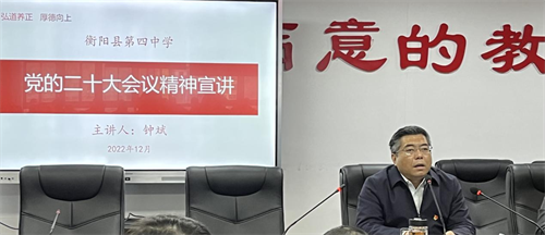 為了深入學(xué)習(xí)、宣傳、貫徹黨的二十大精神,12月8日上午,衡陽縣第四中學(xué)邀請(qǐng)衡陽縣委常委、縣紀(jì)委書記、縣監(jiān)委主任鐘斌同志來校作二十大精神專題輔導(dǎo)報(bào)告。