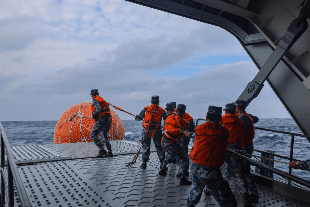 救生演練中,官兵對(duì)模擬目標(biāo)進(jìn)行打撈