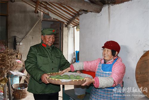 “揉、搓、捏、放餡……”在該縣海陽鎮(zhèn)鹽埔村77歲老兵葉七二家里,10名社工和志愿者與老兵一邊做清明粿,一邊同學(xué)《退役軍人保障法》、聆聽老兵從軍報(bào)國故事。據(jù)老人介紹,他是1968年參軍入伍,1974年退伍,多次受到部隊(duì)表彰,部隊(duì)生活一輩子都忘不了。“以前家庭生活比較貧苦,要想吃到今天這樣的清明粿就是一種奢侈。現(xiàn)在生活好了,想吃天天都可以吃。我已經(jīng)很滿足了,感謝黨的政府的好政策……”講起了當(dāng)年的革命歲月和現(xiàn)在的幸福生活,葉七二老人激動(dòng)不已。