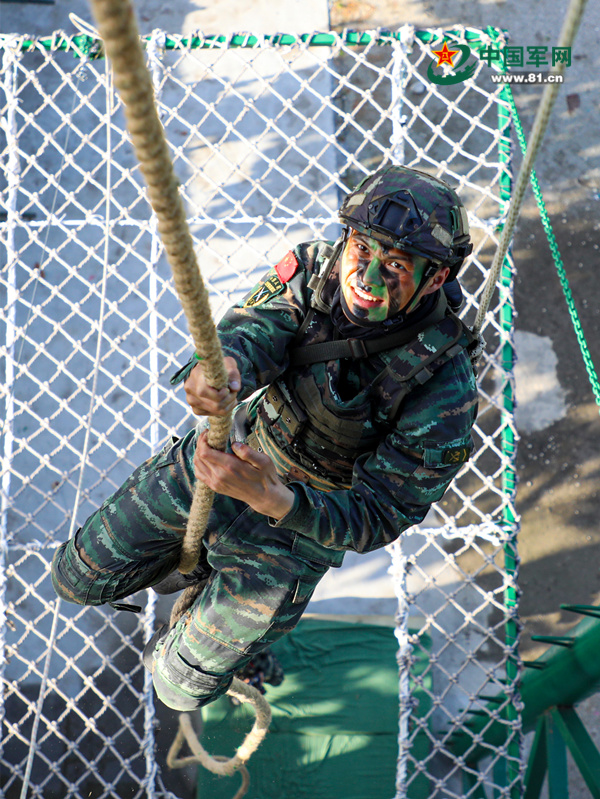 18米攀繩訓練。吳浩 攝